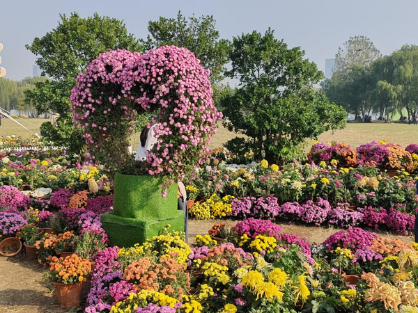 本次菊花展突破傳統(tǒng)形式,以開(kāi)放之姿迎接每一位市民與秋天對(duì)話:300+精品菊品,8大色系交織成錦,遍布9大拍照主題區(qū),形成移步異景的沉浸體驗(yàn);9大主題場(chǎng)景融合詩(shī)詞意境與現(xiàn)代美學(xué),從“采菊東籬”的田園造景,到“秋光疊影”的層疊花廊,每一處都是鏡頭與自然的對(duì)話;1座精品菊花展臺(tái)集中呈現(xiàn)名貴菊種,展現(xiàn)菊文化的深厚底蘊(yùn)與育種匠心;散布其間的藝術(shù)打卡點(diǎn),將秋日元素與江城文化符號(hào)巧妙結(jié)合,實(shí)現(xiàn)傳統(tǒng)秋韻與當(dāng)代美學(xué)的詩(shī)意共鳴。“從前賞菊多在園林殿堂,如今漫步堤岸便是菊海爛漫!”這聲贊嘆,正成為許多蕪湖人的共同感受。