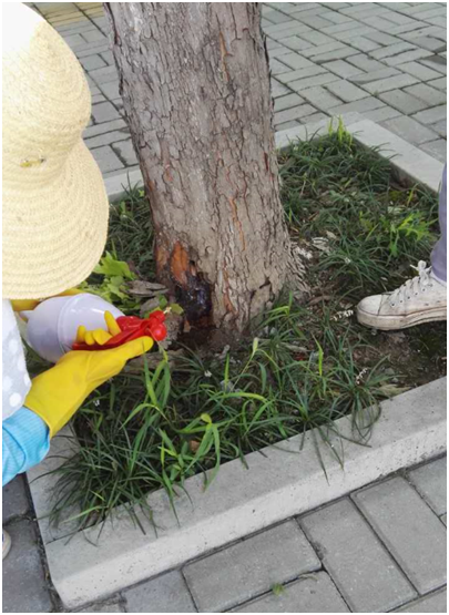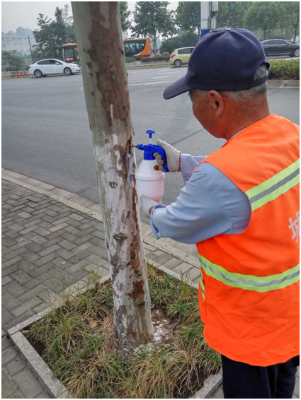 集團(tuán)公司立即采取了防治措施:首先針對剛剛羽化的成蟲,在成蟲活動頻繁的樹干及周圍,噴施天牛星微膠囊劑;其次針對幼蟲進(jìn)行了蟲孔注射藥劑和樹體殺蟲處理。