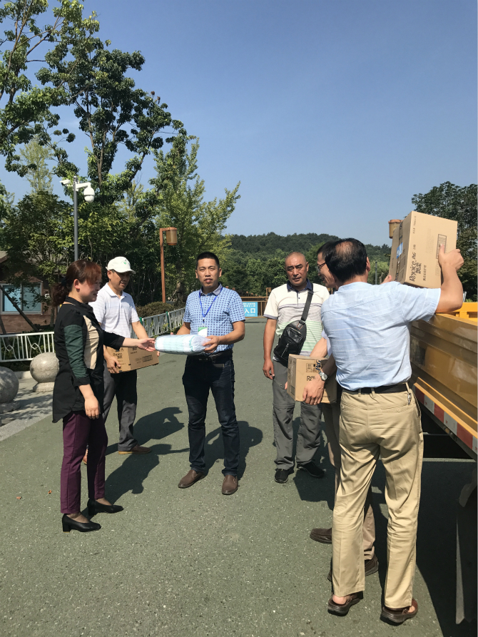 7月24日上午,蕪湖城市園林集團有限公司領導帶領集團工會和相關部門負責人分別對集團各子公司始終奮戰(zhàn)在抗旱保苗一線的綠化養(yǎng)護工人進行慰問,給在高溫下仍然堅守崗位的一線工人們送去了毛巾、肥皂、洗發(fā)露等勞保用品以及風油精、藿香正氣水等防暑降溫物品。