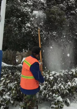 藍(lán)綠公司下轄我市鏡湖公園、九蓮塘公園等多個(gè)園林景點(diǎn),同時(shí)負(fù)責(zé)濱江公園、花津南路、長(zhǎng)江南路、205國(guó)道、弋江區(qū)南瑞小區(qū)、高校園區(qū)等多處綠化養(yǎng)護(hù)。為保障市民安全出行,藍(lán)綠公司成立七支應(yīng)急搶險(xiǎn)小分隊(duì),自23日起,除加強(qiáng)常規(guī)防范外,提前對(duì)各處行道樹和景觀樹進(jìn)行針對(duì)性修剪和防寒工作,力求降雪不大量堆積樹頭、壓斷樹枝,給樹木帶來毀滅性打擊,造成不可逆損失。在開始降雪后,派專人專車進(jìn)行不間斷的路面巡邏,24小時(shí)進(jìn)行打雪作業(yè),盡可能減少降雪對(duì)綠化景觀的損害;及時(shí)清理路面散落的枯枝斷枝,整理倒伏樹木;組織人員做好責(zé)任地段清雪除冰工作,保證責(zé)任道路暢通和公園景區(qū)行人正常通行。