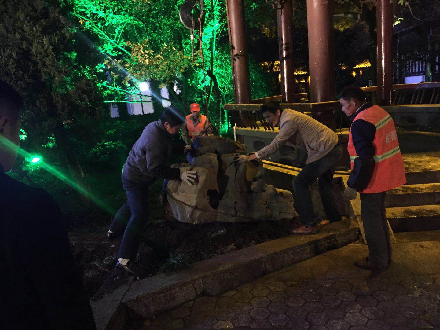 冬意初臨,鏡湖公園綠化提升改造工程正有條不紊進行,為提高苗木成活率,現(xiàn)場工作人員嚴格控制施工程序,冒雨按圖施工。做好翻地、平整準備工作,嚴格審核苗木品種、數(shù)量及規(guī)格,確保“栽植一片,成活一片”。