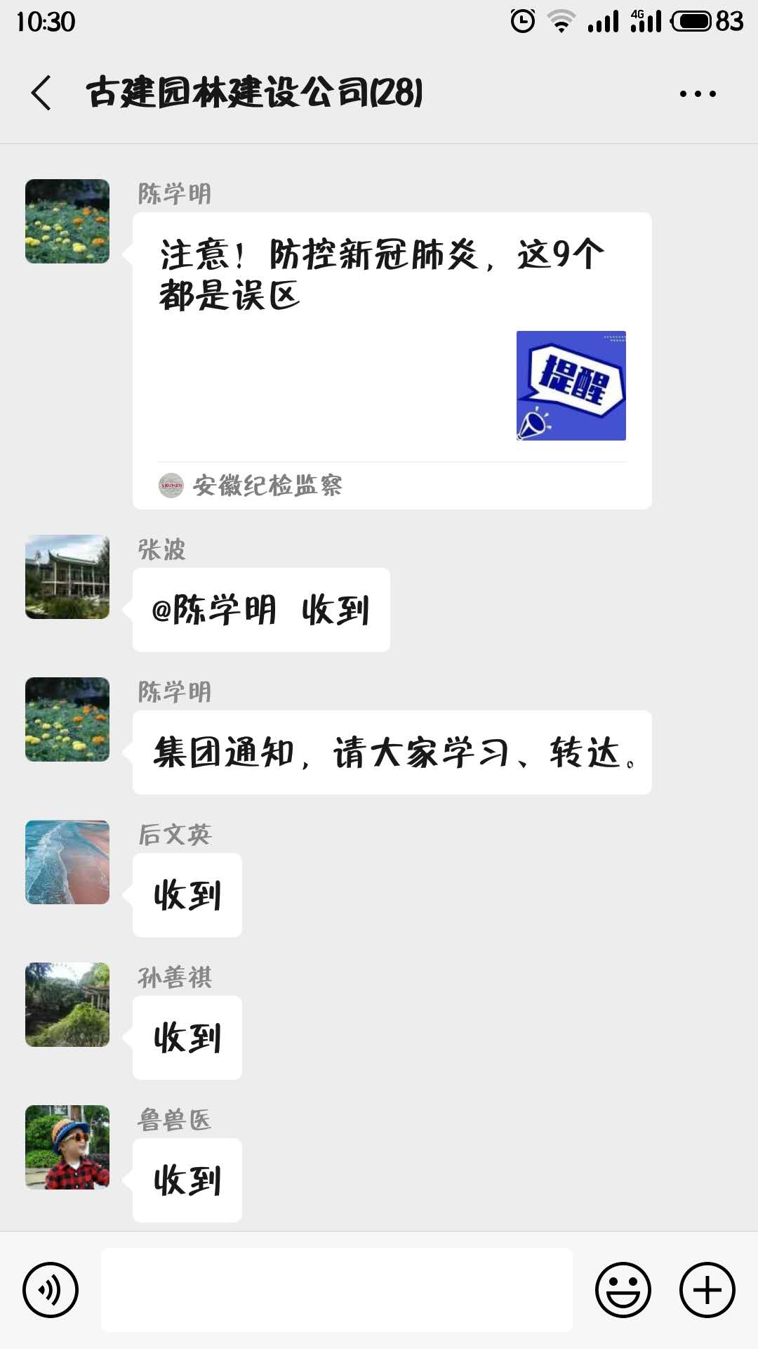 古建公司每日值班領(lǐng)導(dǎo)對當(dāng)日疫情防控工作負(fù)責(zé),認(rèn)真做好值班值守工作,保證通訊24小時暢通。加強信息報送。