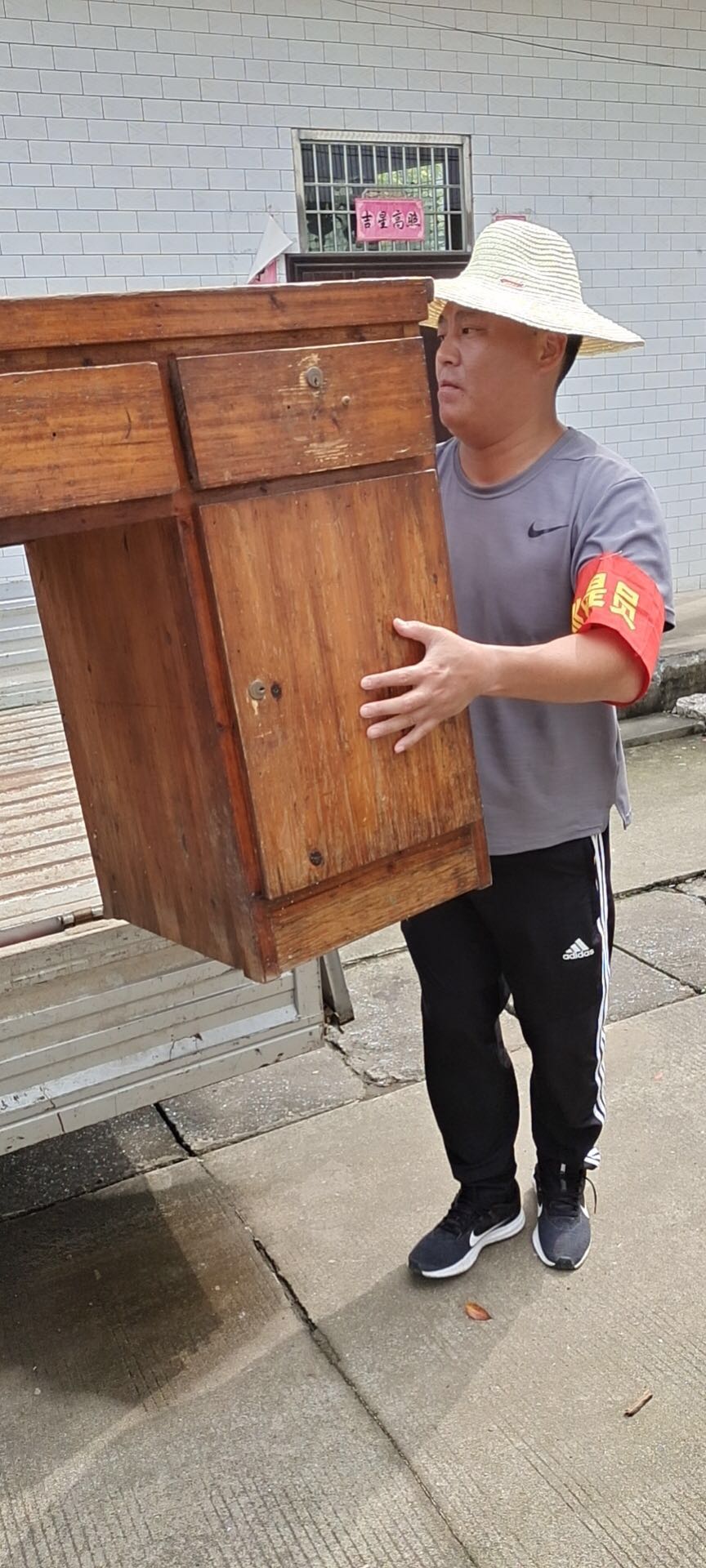 7月29日下午,在完成巡堤查險(xiǎn)任務(wù)后,接到當(dāng)?shù)卣笾?,需要人員幫助受困群眾搬運(yùn)家具,撤離隱患地區(qū),隊(duì)員李勇不顧疲勞、主動請纓,妥善完成工作任務(wù)。
