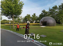 為了在黨的100歲生日之際向游客展現(xiàn)神山公園最美的一面,我們對(duì)公園內(nèi)的綠化工作做了更高的要求,除每日日常綠化維護(hù)外,我們還加班加點(diǎn)對(duì)綠化進(jìn)行了進(jìn)一步提升,更加細(xì)致地修剪養(yǎng)護(hù)草坪、模紋,對(duì)水域內(nèi)的水草、浮萍做定時(shí)清理,做好水質(zhì)管控。