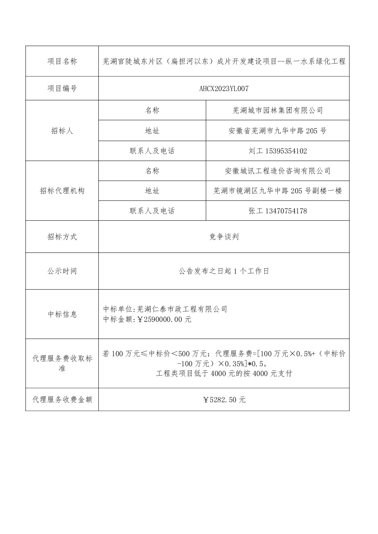 蕪湖官陡城東片區(qū)(扁擔(dān)河以東)成片開(kāi)發(fā)建設(shè)項(xiàng)目--縱一水系綠化工程中標(biāo)結(jié)...