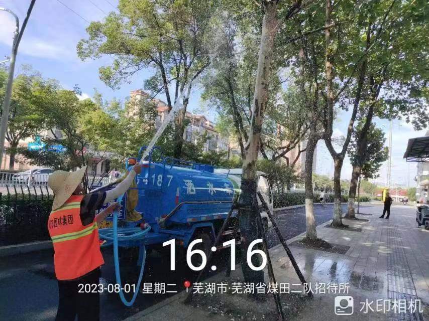 針對持續(xù)高溫的天氣,公園、道路綠化養(yǎng)護工作面臨嚴峻的考驗,抗旱保綠成為當下最重要的任務(wù)。蕪湖城市園林集團在市城管局、園林處的正確指導(dǎo)下,針對不同苗木特性制定應(yīng)急預(yù)案,多措并舉,全面開啟“抗旱保苗護綠”模式。