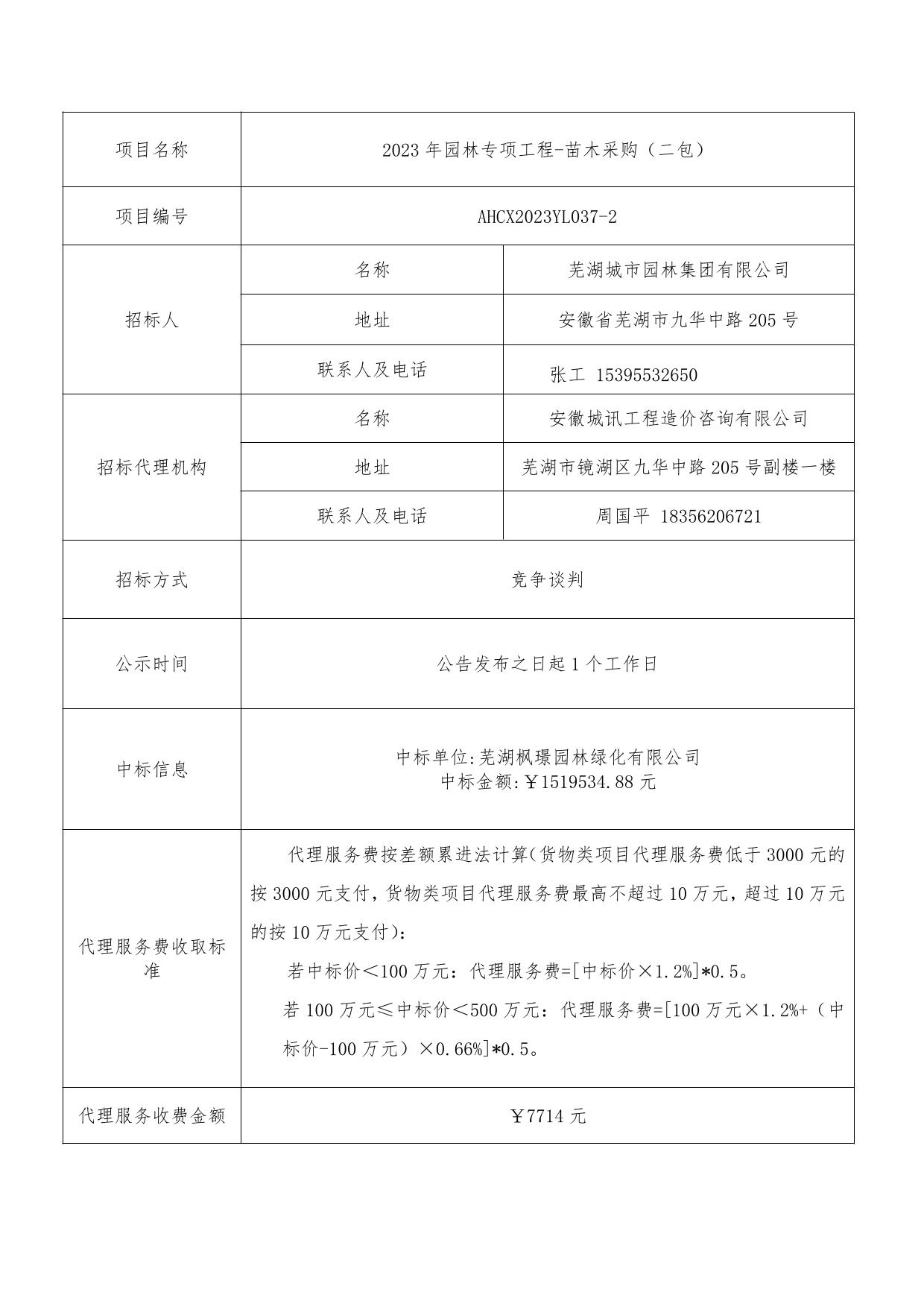 • 2023年園林專項(xiàng)工程-苗木采購(二包)中標(biāo)結(jié)果公示