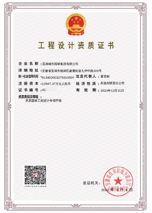 近日,蕪湖城市園林集團(tuán)通過安徽省住建廳資質(zhì)申報(bào)的各項(xiàng)審核,成功取得風(fēng)景園林工程設(shè)計(jì)專項(xiàng)甲級(jí)資質(zhì),標(biāo)志著園林集團(tuán)成為蕪湖市第三個(gè)擁有風(fēng)景園林設(shè)計(jì)甲級(jí)資質(zhì)的企業(yè)。