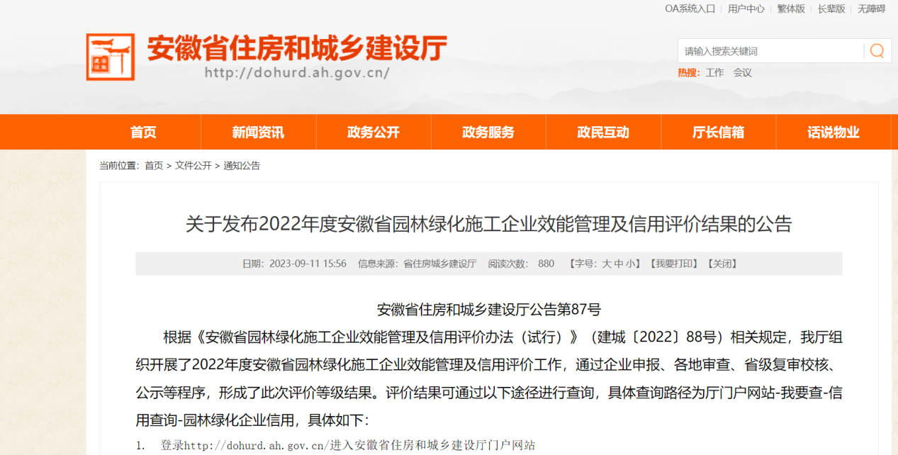 近日,2022年度安徽省園林綠化施工企業(yè)效能管理及信用評價結(jié)果公布,蕪湖城市園林集團(tuán)有限公司榮獲5A等級(最高)評價。