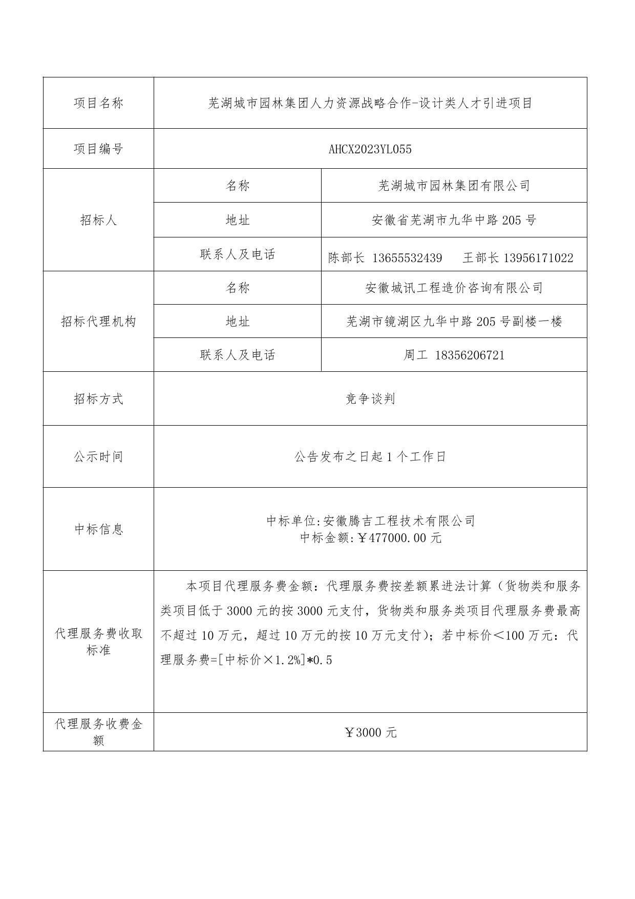 蕪湖城市園林集團(tuán)人力資源戰(zhàn)略合作-設(shè)計(jì)類(lèi)人才引進(jìn)項(xiàng)目成交結(jié)果公告