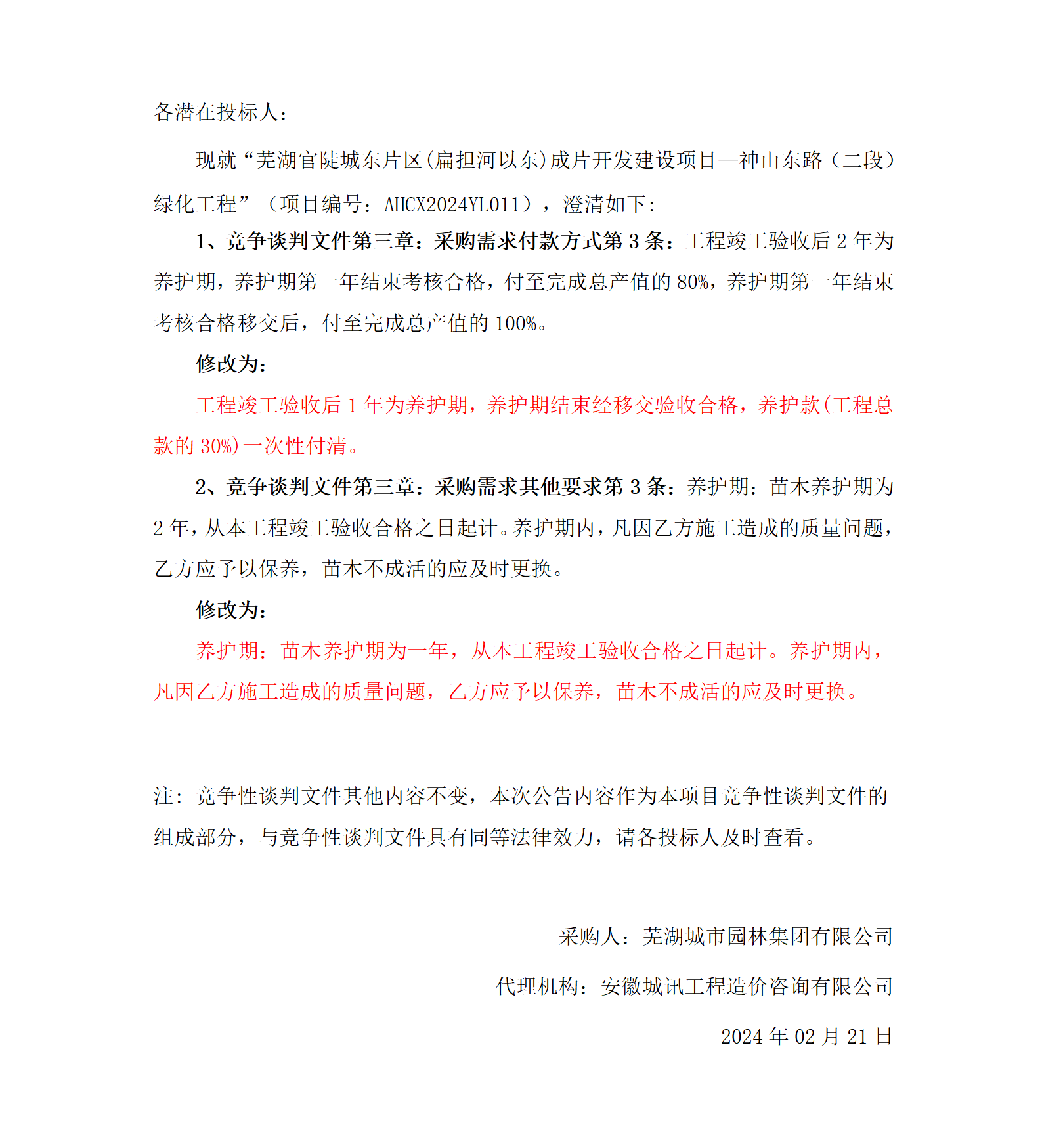 蕪湖官陡城東片區(qū)(扁擔河以東)成片開發(fā)建設項目—神山東路(二段)綠化工程...