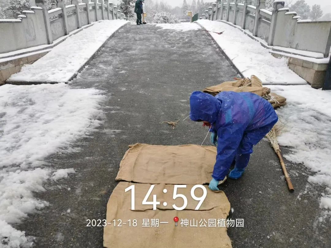 受強(qiáng)冷空氣影響,一場(chǎng)大雪飄然而至,厚厚的積雪給道路交通、市民生活帶來諸多不便。為方便市民安全游園,神山公司迅速行動(dòng),及時(shí)組織領(lǐng)導(dǎo)干部、黨員、職工以及養(yǎng)護(hù)隊(duì)伍全面開展清雪行動(dòng),對(duì)公園的橋梁、廁所臺(tái)階進(jìn)行撒鹽、鋪麻袋;對(duì)公園水面、山林等危險(xiǎn)區(qū)域設(shè)置警戒線,對(duì)倒伏樹木進(jìn)行扶正,防止危險(xiǎn)的發(fā)生,為市民出行安全“保駕護(hù)航”。