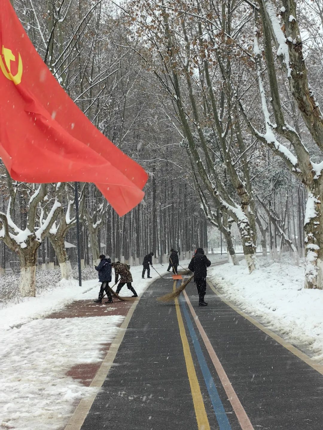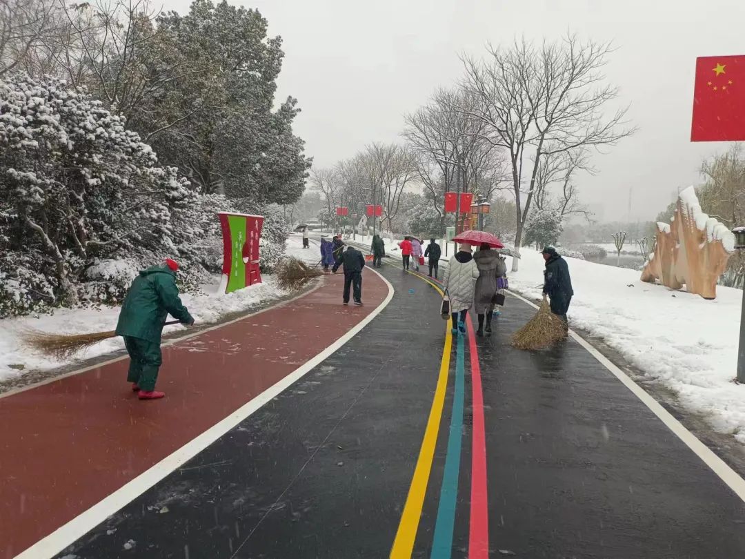 “小心慢行,注意路滑!”大家一邊掃著雪,一邊提醒著過往的行人。神山公園道路、人行通道等出行路段開辟出了一條“平安路”“溫暖路”,為市民出行消除了安全隱患。積雪的清掃為市民的出行安全提供了有力保障。