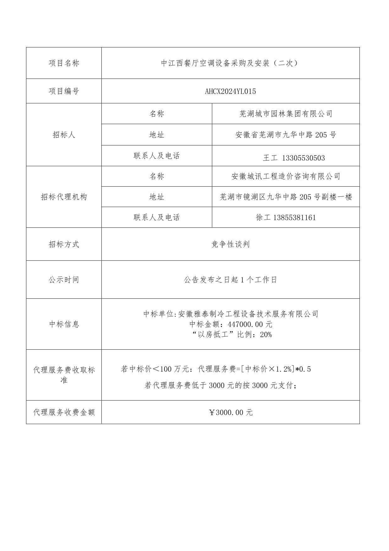 中江西餐廳空調(diào)設(shè)備采購及安裝(二次)成交結(jié)果公告