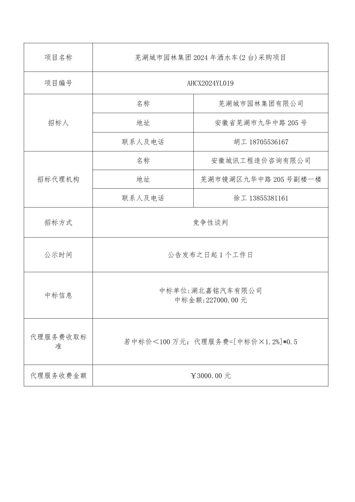 蕪湖城市園林集團(tuán)2024年灑水車(2臺(tái))采購(gòu)項(xiàng)目成交結(jié)果公告