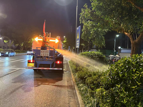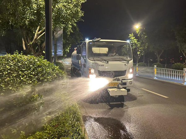 統(tǒng)籌規(guī)劃,科學(xué)澆水,合理安排時間和人力。在高溫天氣下,給綠植澆水頗有“門道”。首先,澆水時間必須避開中午高溫時段,以免灼傷綠植。鑒于植物生長特性,若在高溫時段澆水,水分在葉片上會迅速蒸發(fā)并形成高溫蒸汽,這既容易對葉片造成燙傷,又容易讓植物根系受損。為此,園林集團(tuán)每日精心制定實(shí)時抗旱計劃,采用“兩頭做、中間休”的工作模式,每天最早凌晨三點(diǎn)上路作業(yè),上午十點(diǎn)至下午五點(diǎn)暫停作業(yè),晚上六點(diǎn)至午夜繼續(xù)安排抗旱澆水,落實(shí)錯峰澆灌,在早晚時段加班加點(diǎn)澆水作業(yè)。其次,采取緩慢澆灌、多次澆灌的方式,提升苗木土壤的含水量,增強(qiáng)其抗旱能力,確保做到細(xì)澆慢灌、澆足澆透,全面覆蓋,不留任何死角。另外,重點(diǎn)呵護(hù)不耐旱苗木、脫水嚴(yán)重苗木、當(dāng)年新栽苗木,并在晚間對不耐旱的喬灌木采用滴灌的方式進(jìn)行深度補(bǔ)水。