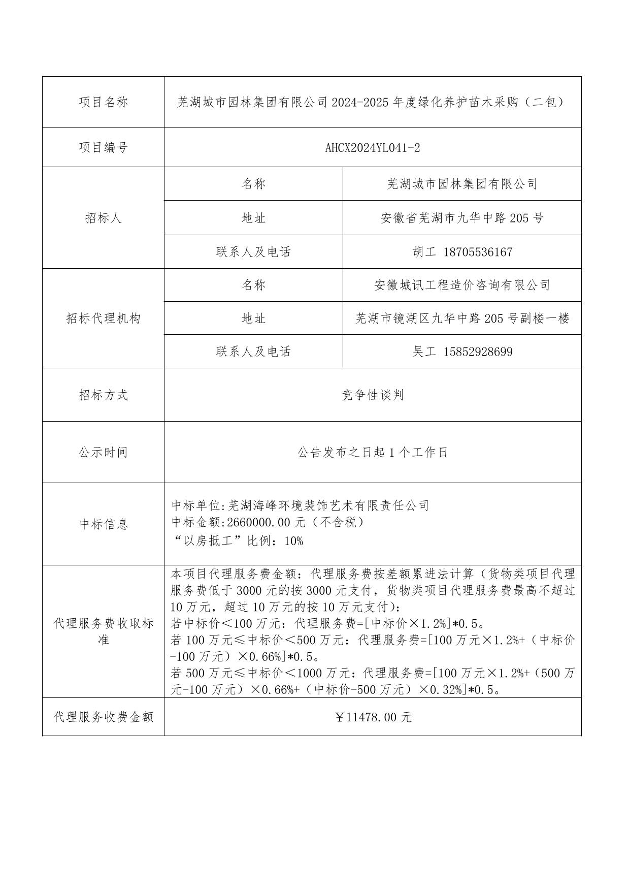 蕪湖城市園林集團(tuán)有限公司2024-2025年度綠化養(yǎng)護(hù)苗木采購(gòu)(二包)成